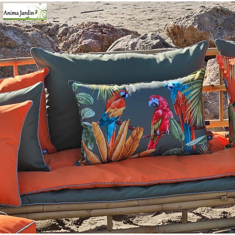 Son coloris vert olive rehaussé par un motif perroquet multicolore apportera une note exotique et chaleureuse à votre décoration extérieure. Transformez votre espace avec cet accessoire à la fois esthétique et pratique !