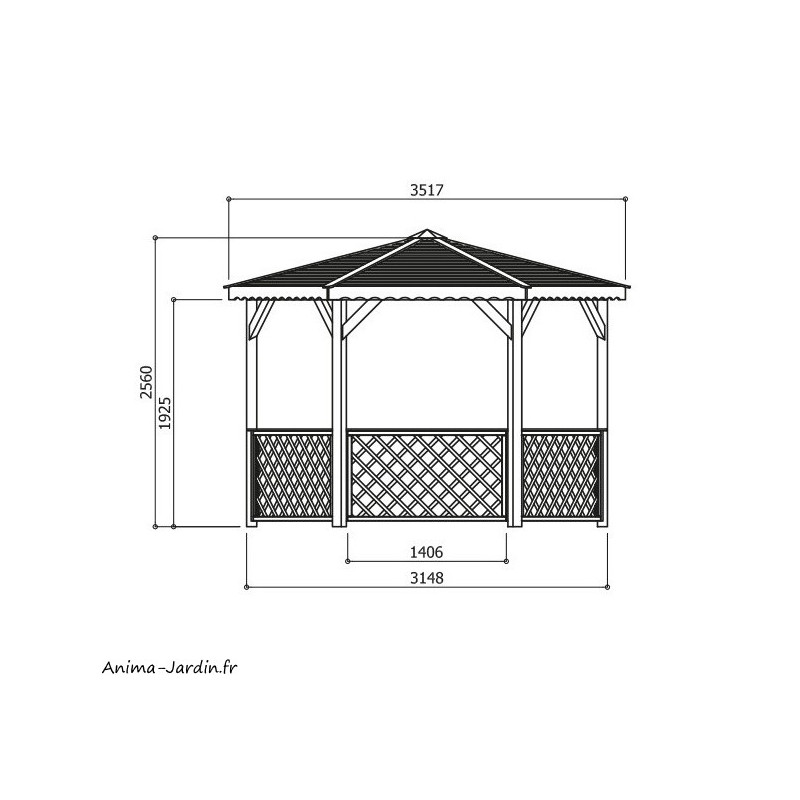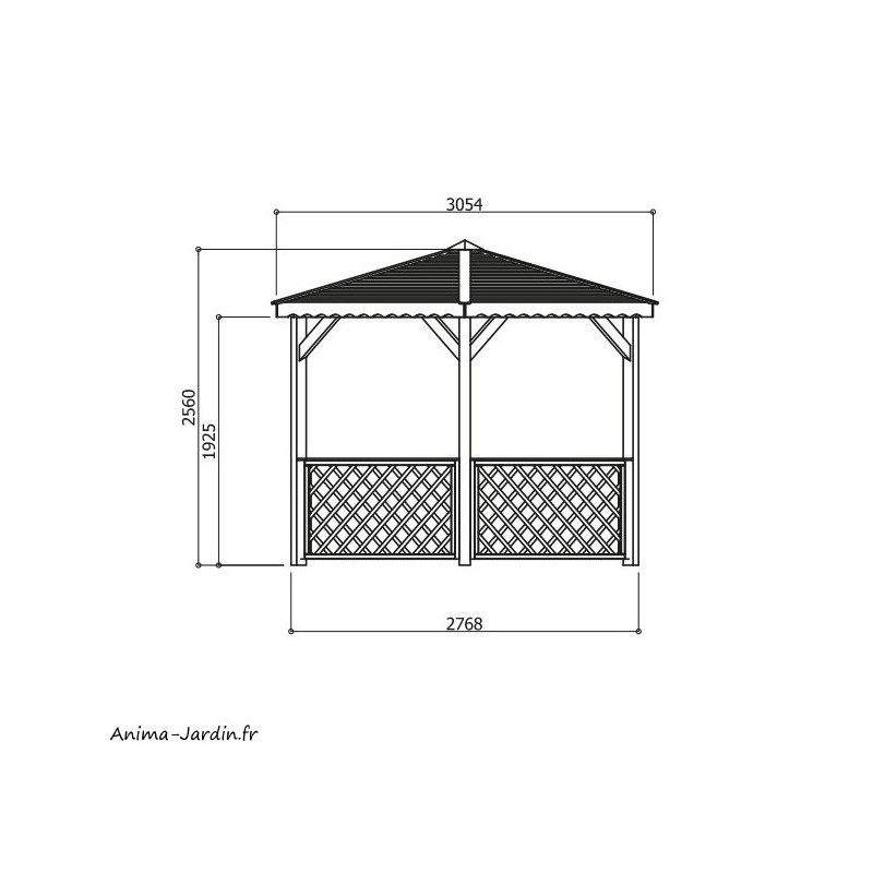 Superbe kiosque en bois autoclave, d'une surface intérieure de 6.68 m². Vous avez la possibilité d'utiliser ce kiosque comme auvent, comme espace de travail ou bien encore comme lieu de détente.