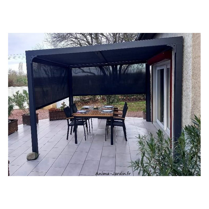 Découvrez ce superbe toit terrasse en aluminium de couleur gris anthracite. Idéal pour se protéger des rayons du soleil ou bien de la pluie. Son toit amovible vous permet de profiter de votre extérieur en toute quiétude, en effet grâce à son système de guidage manuel, vous pourrez très simplement fermer ou ouvrir les panneaux avant afin de choisir entre ombrage ou bien clarté.