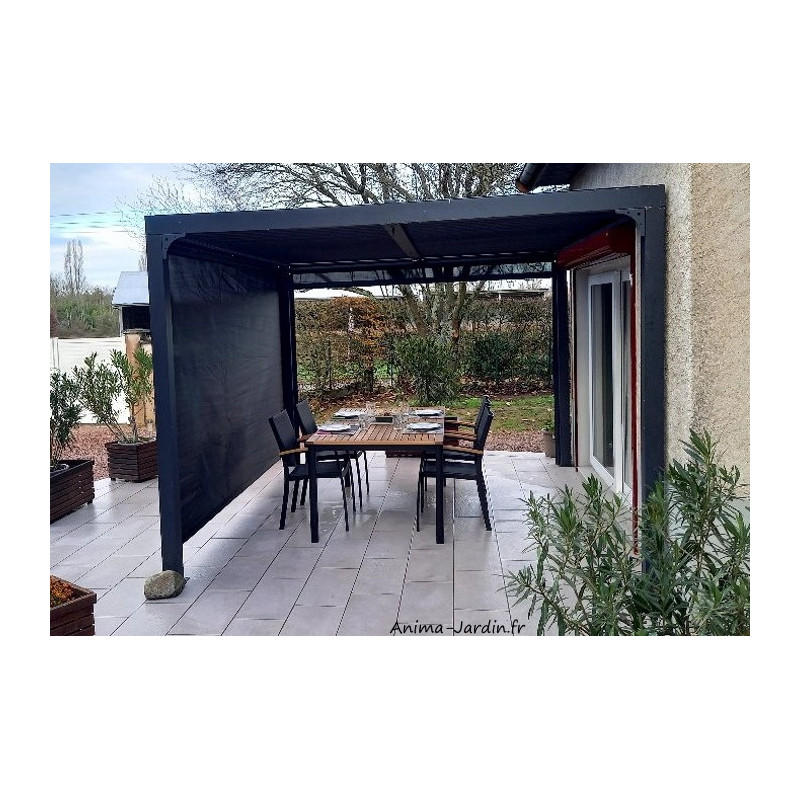 Créez un espace de détente à l'abri du soleil et de la pluie avec cette superbe pergola bioclimatique. Sa matière en aluminium avec sa finition gris anthracite ne craindrons pas les intempéries, la rouille et enfin, l'aluminium est insensible à la corrosion.