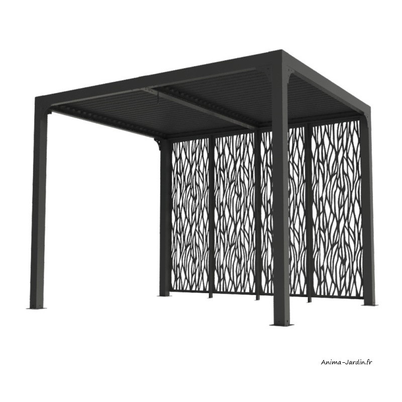 • 4 panneaux acier latéraux moucharabieh thermolaqués coloris gris : 4 panneaux pour le côté 3 m.