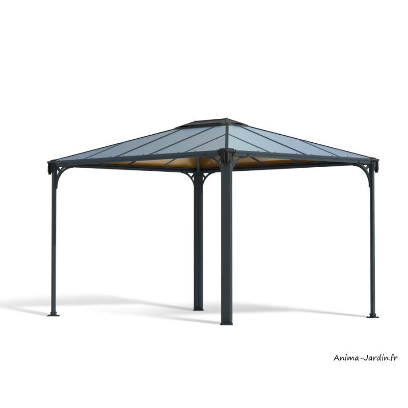 - Couverture en polycarbonate bronzée alvéolaire de 6 mm ; elle ne jaunit pas et ne se fragilise pas avec le temps |