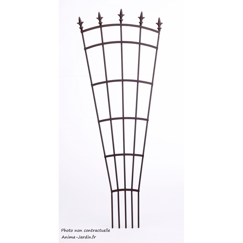 Superbe treillis de forme triangulaire, idéal pour votre décoration extérieure. Ce treillis à la couleur rouille antique mettra parfaitement en valeur vos plantes grimpantes.
